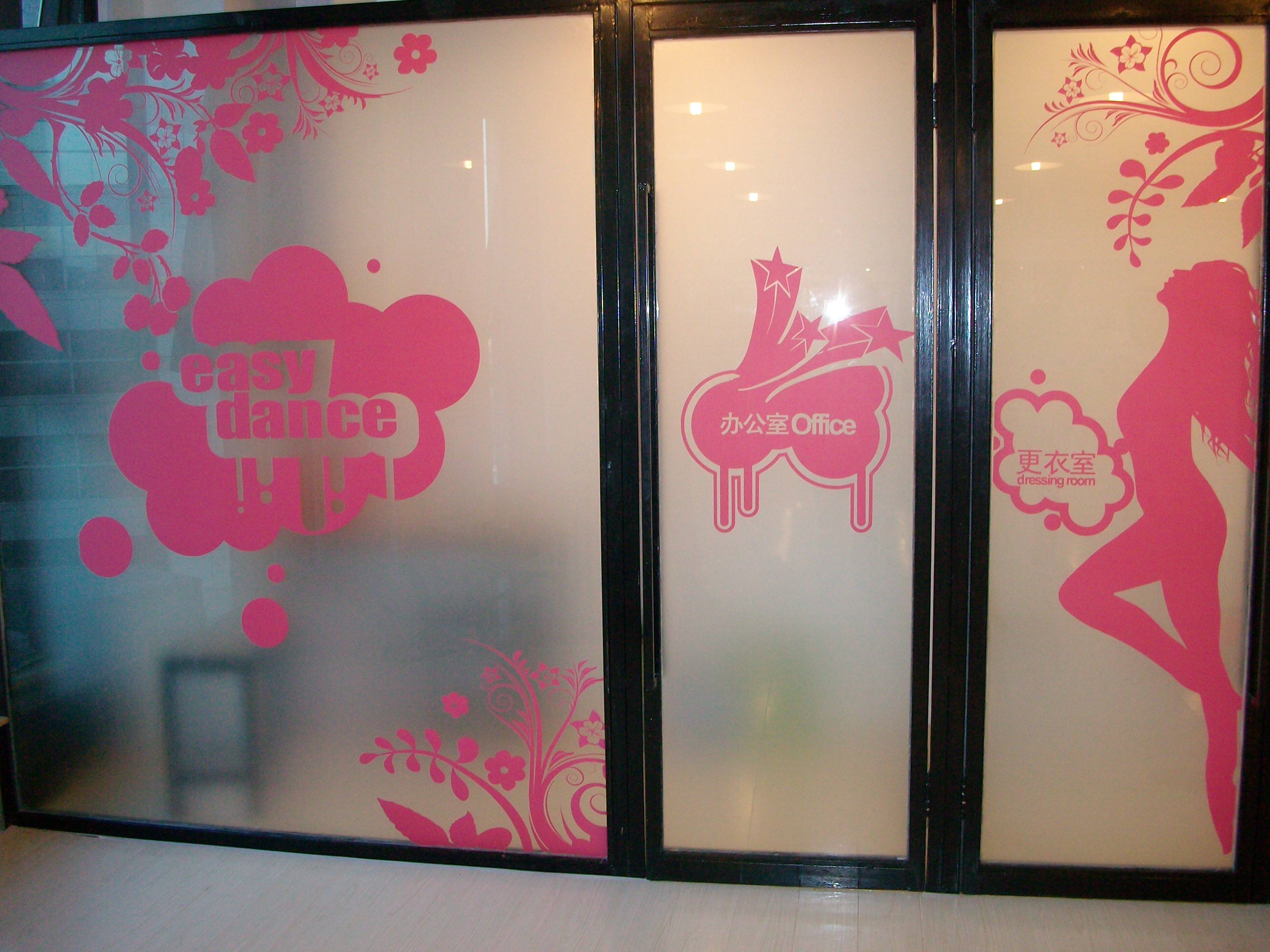 悅舞、悅美麗、悅生活、悅?cè)藧傄?mdash;—“悅舞俱樂部” 現(xiàn)有中關(guān)村店、現(xiàn)代城SOHO店、光華SOHO店等分店 自2008年至今我公司陸續(xù)完成了,該單位各分部的創(chuàng)意紅色、白色、磨砂膜的創(chuàng)意鏤空。